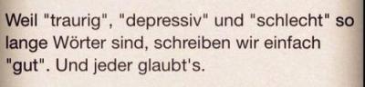 Den zu wissen das man auf dieser scheiß Welt gebraucht wird gibt dem Leben einen kleinen Sinn, den Sinn für diesen Mensch da zu sein. Es ist einfach schön zu wissen einem Menschen geholfen zu haben. Wenn man einen Menschen aus einem tiefen Loch gezogen hat ist man stolz das man das geschafft hat. Man freut sich wenn man anderen helfen konnte deren Probleme zu lösen. Doch was ist wenn man das alles, was man bei anderen schafft, bei sich selbst nicht hin kriegt? Wenn man seine eigenen Probleme nicht lösen kann? Wenn man in ein tiefes Loch fällt und nicht mehr weiß wie man dort wieder raus kommen soll? Wenn man allen helfen kann aber bei sich selbst nicht weiß wie? ... link (0 Kommentare) ... comment Kennt ihr das?