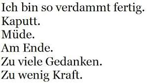 Die Frage warum man lebt und wozu kann einem wohl keiner beantworten. Jeder sollte für sich selbst den Sinn des Lebens finden. Doch worin finde ich ihn? Woran merke ich das das jetzt der Sinn meines Lebens ist? Was wenn ich den Sinn meines Lebens verfehl oder verpass? Was ist wenn ich so wie mein Leben gerade ist nicht unbedingt zufrieden bin? Ich mich aber nicht traue etwas zu ändern? Ich weiß nicht was ich tun soll. Aber dann wird weiter glücklich gespielt, gelächelt und gesagt das es mir gut geht, so das es alles glauben. ![]() Hab irgendwie keine Lust mehr auf die Situation. Iat alles so kompliziert. Macht mich einfach innerlich kaputt. Die zwei Menschen die ich am meisten liebe "hassen" sich. Lassen kein gutes Wort am anderen aus. Weiß nicht mehr ob ich das alles aushalt. Ob ich es aushalten will. Lohnt es sich diese Schmerzen zu ertragen? Geh ich selbst daran zu Grunde oder halte ich das alles aus? Dazu kommt noch die Angst. Die Angst nicht gut genug zu sein für ihn. Die Angst das er geht wegen einer anderen. Ich weiß zwar das er mich liebt, aber ich weiß auch das ich kompliziert bin, nicht einfach und schwer zu verstehen. Weiß nicht ob ich es an seiner Stelle mit mir aushalten würde. Warum soll er es dann mit mir aushalten? Ich habe um mich herum eine Schutzmauer gebaut. Die verschweigen soll wie es in mir drin aussieht und alle glauben lassen soll, das es mir gut geht. Leider hat diese Schutzmauer heute Abend versagt. Ich hätte am liebsten angefangen zu weinen, obwohl ich in einer Gruppe voll Menschen saß. Ich hab es versucht so gut es ging zu unterdrücken. Leider haben die anderen wohl doch gemerkt das es mir nicht ganz so gut geht, also habe ich wieder versagt. Habe das Gefühl nichts richtig zu machen. Am Ende zu sein. Kurz vorm Aufgeben zu sein. Doch irgendwas in mir sagt "Aufgegeben wird nicht". Also wird weiter gekämpft. Nächtelang, anonym das Herz und die Seele voller Scheißdreck befreit, sodas es irgendwelche Fremden lesen können, oder auch nicht. ... link (0 Kommentare) ... comment Freitag, 3. April 2015